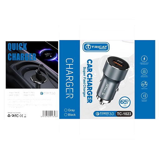 شارژر فندکی فست شارژ 65 وات تریکت TRICAT TC-1023