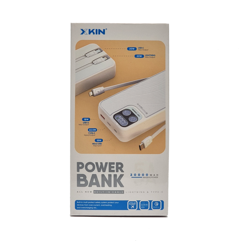پاوربانک Xkin XK PB418 20000 با ظرفیت 20000 میلی‌آمپر ساعت یکی از بهترین انتخاب‌ها برای شارژ دستگاه‌های الکترونیکی است. این پاور بانک با بدنه پلاستیکی مقاوم و طراحی ارگونومیک، مناسب استفاده روزانه و حمل و نقل آسان است.